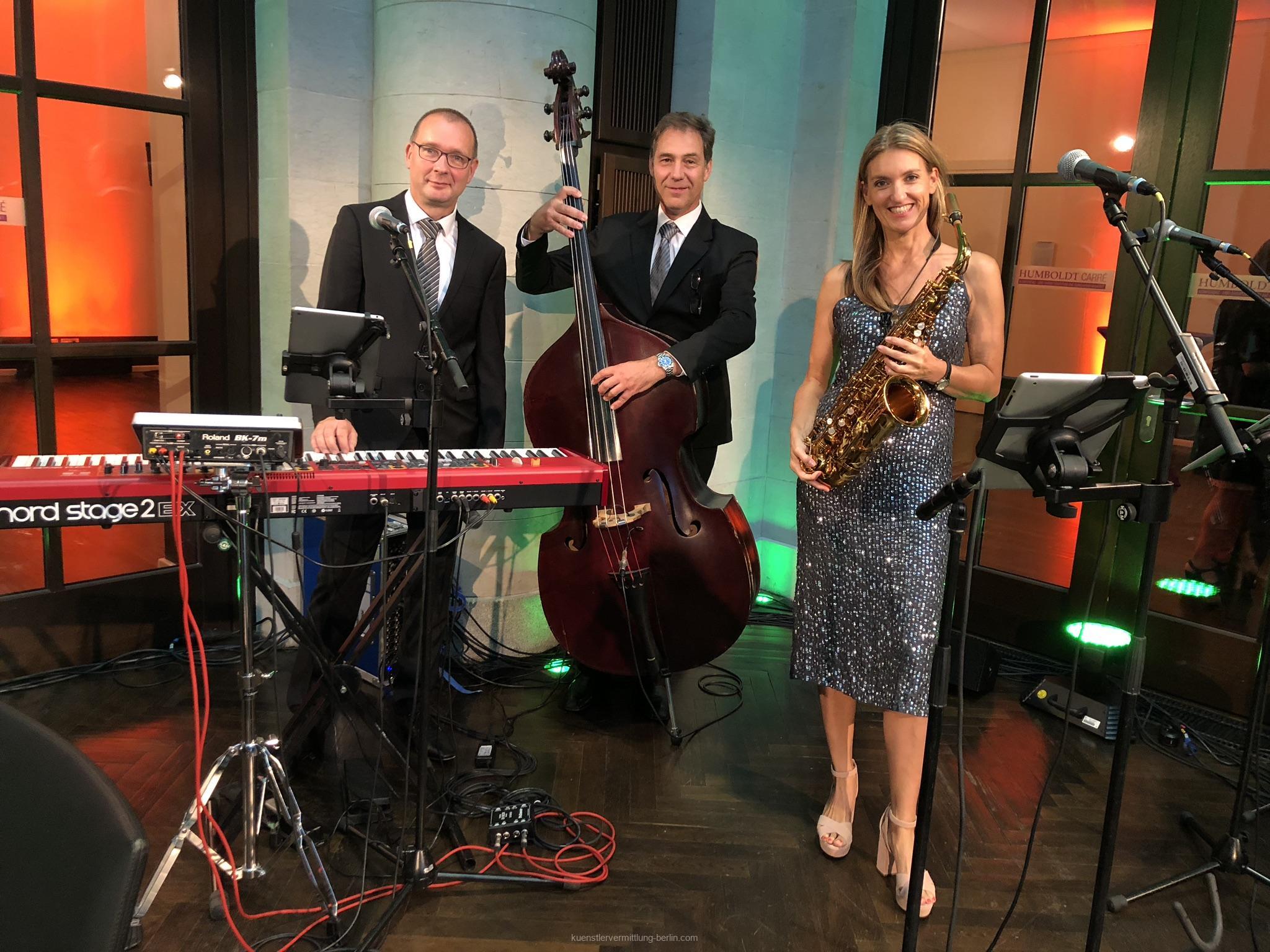 Eine professionelle Jazzband die virtuos und vielseitig mit viel Spaß und Humor  beschwingte Jazz-, Swing- und Film-Melodien spielen. Mit Live-Gesang der attraktiven Saxophonistin, ist diese Formation etwas BESONDERES. Die Musiker der Partyband variieren die Instrumente innerhalb der Spielzeit da jeder Musiker verschiedenen Instrumente beherrscht.